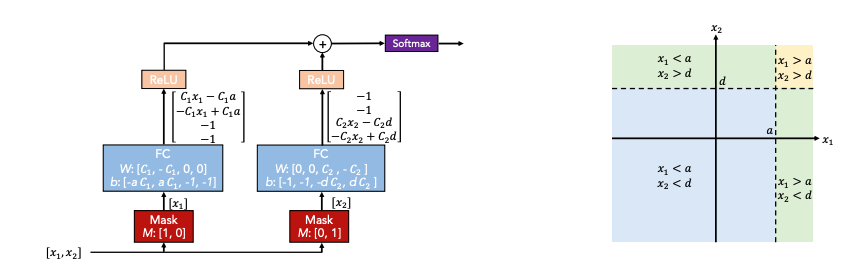- Above figure is the illustration DT-like classification using conventional DNN blocks(left) and the corresponding decision manifold(right).
